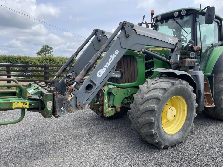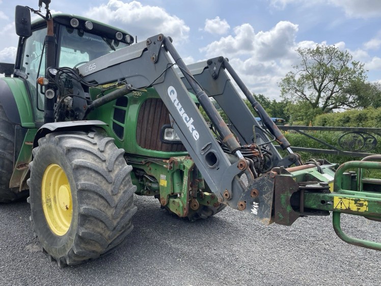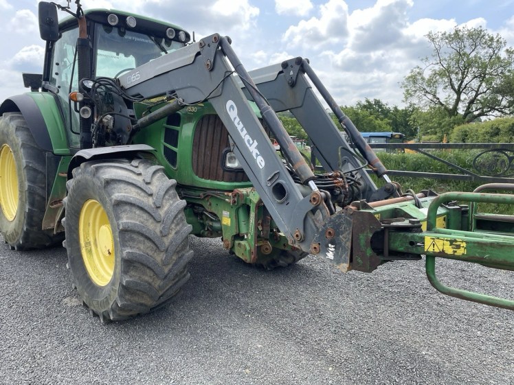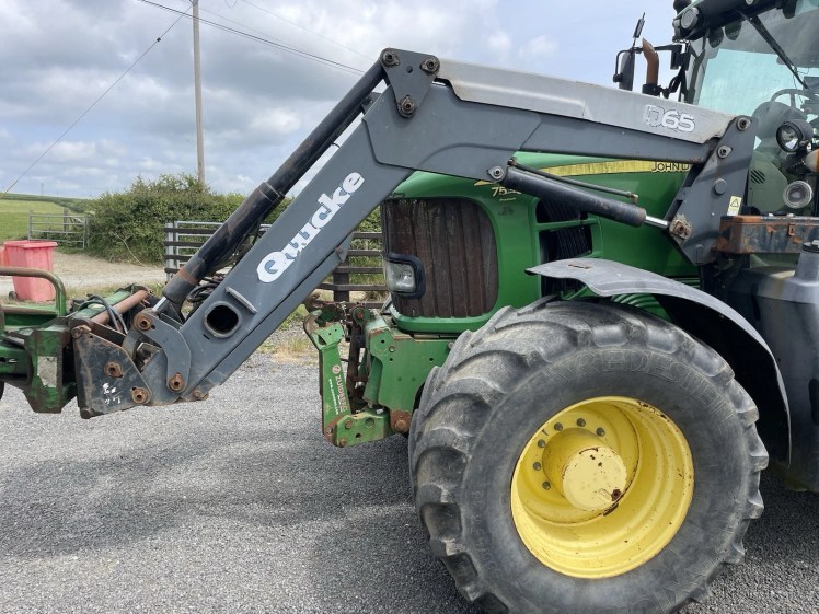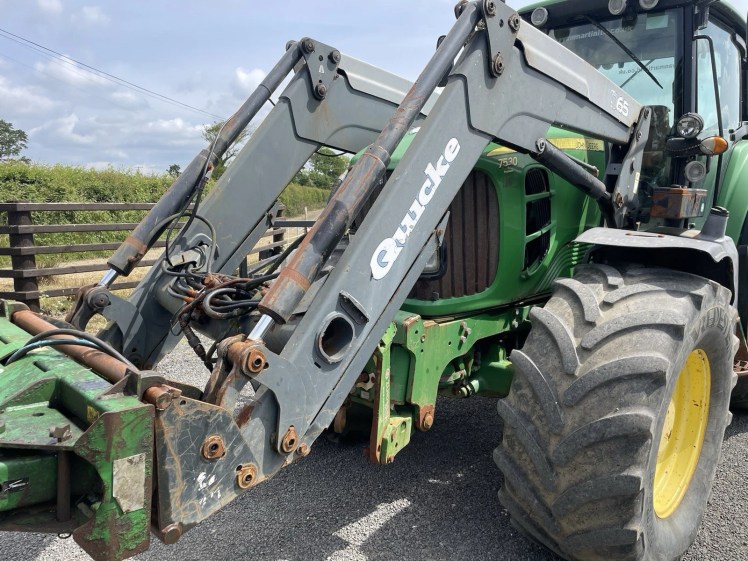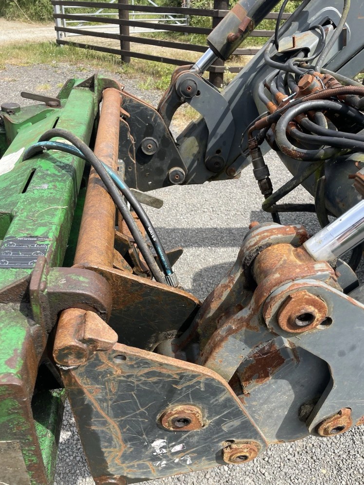 Q65 QUICKE LOADER CURRENTLY ON JOHN DEERE 7530 BALE HANDLER NOT INCLUDED NO LEAKS ON RAMS AND MINIMAL WEAR COMES WITH ALL BOLTS AND CABLES ASSOCIATED WITH THE LOADER ELECTRIC JOYSTICK CONTROL