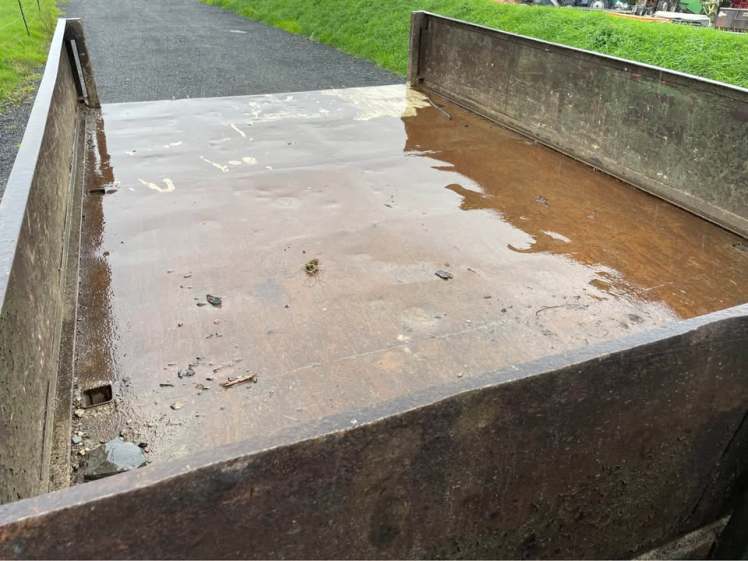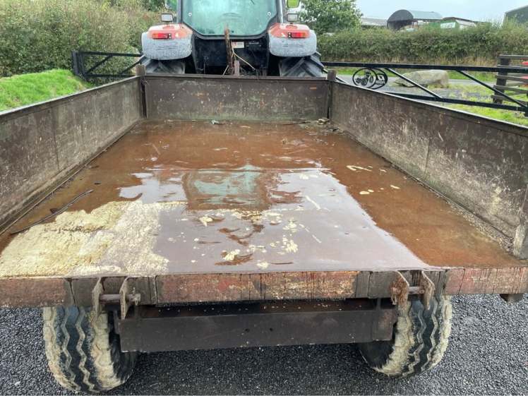 HAS DONE VERY LITTLE WORK ON 550 FLOTATION TYRES – AS NEW 10 STUD COMMERCIAL AXLES, SPRUNG DRAW BAR. UP AND OVER DOOR WHICH CAN BE TAKEN OFF IN ONE MINUTE WITH 4 QUICK RELEASE PINS. BED OF TRAILER VERY GOOD. GOOD SAVING ON NEW